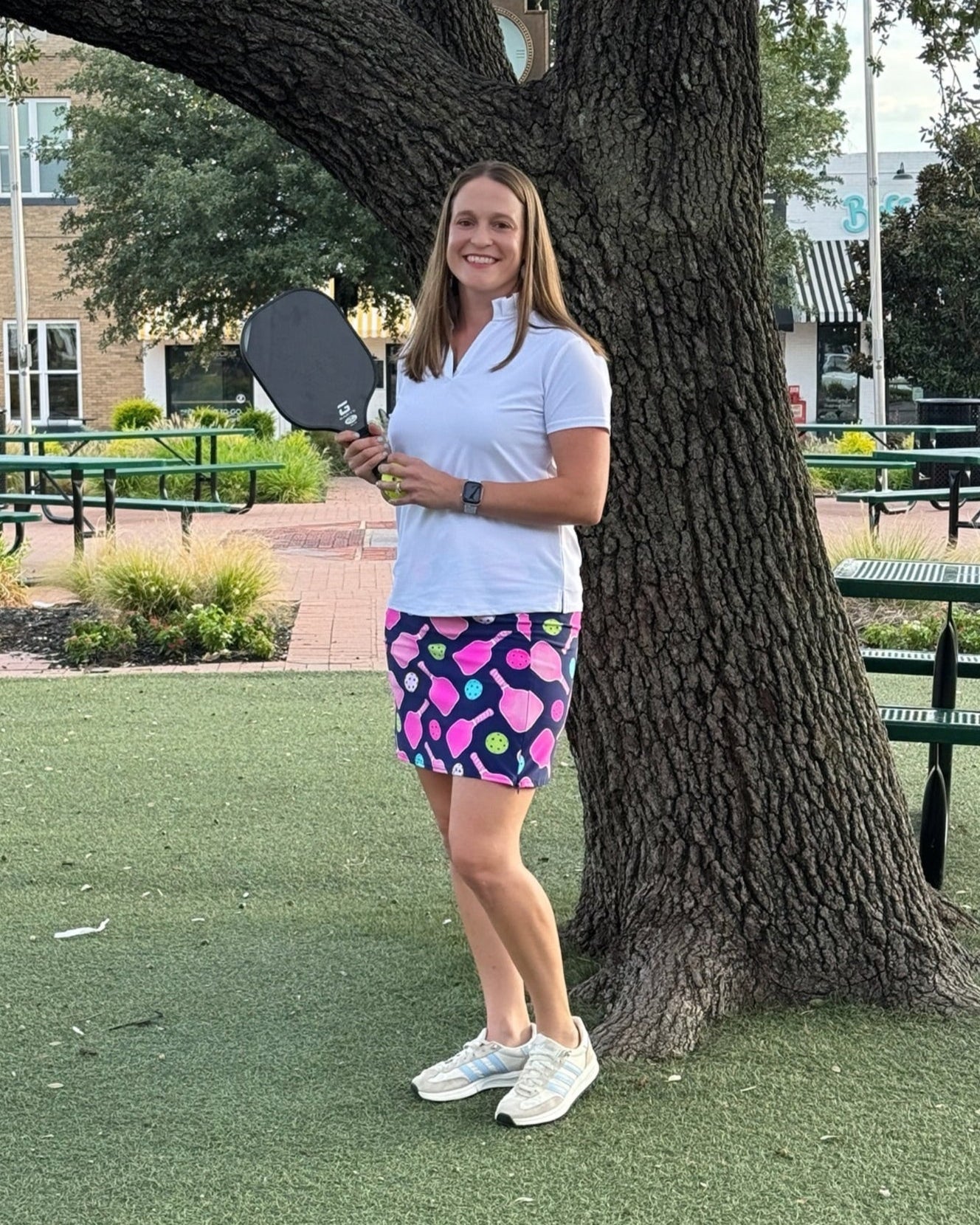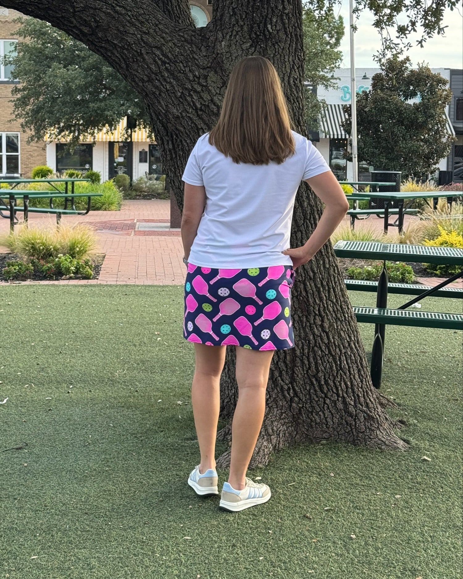 Bring your playful energy to the court with this fun pickleball skirt designed for style, comfort and movement! The stretch fabric moves with you with just the right amount of bounce. Designed to take you from the court to out with friends- no change required!