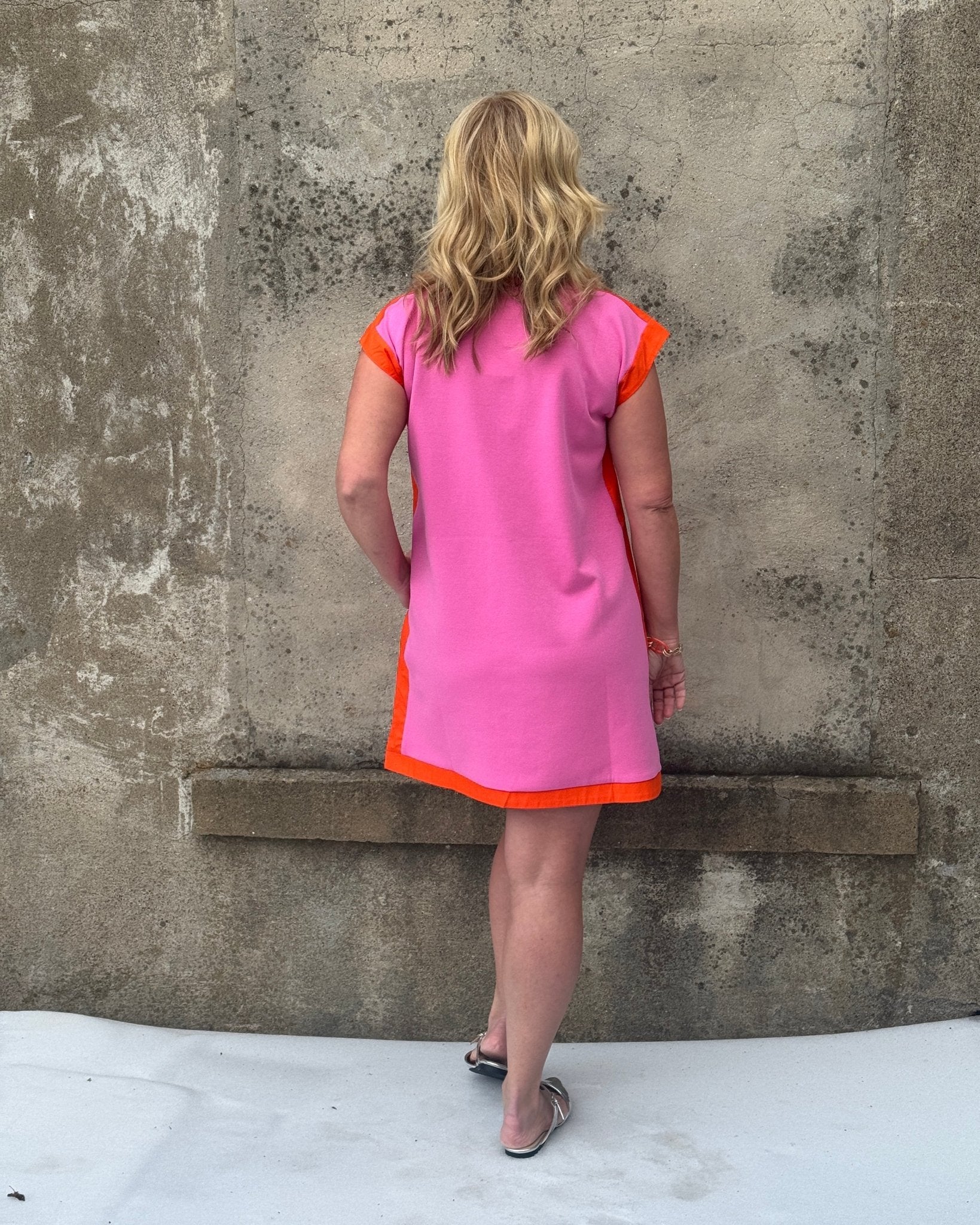 Sunset Glow Colorblock V-Neck Sheath Dress