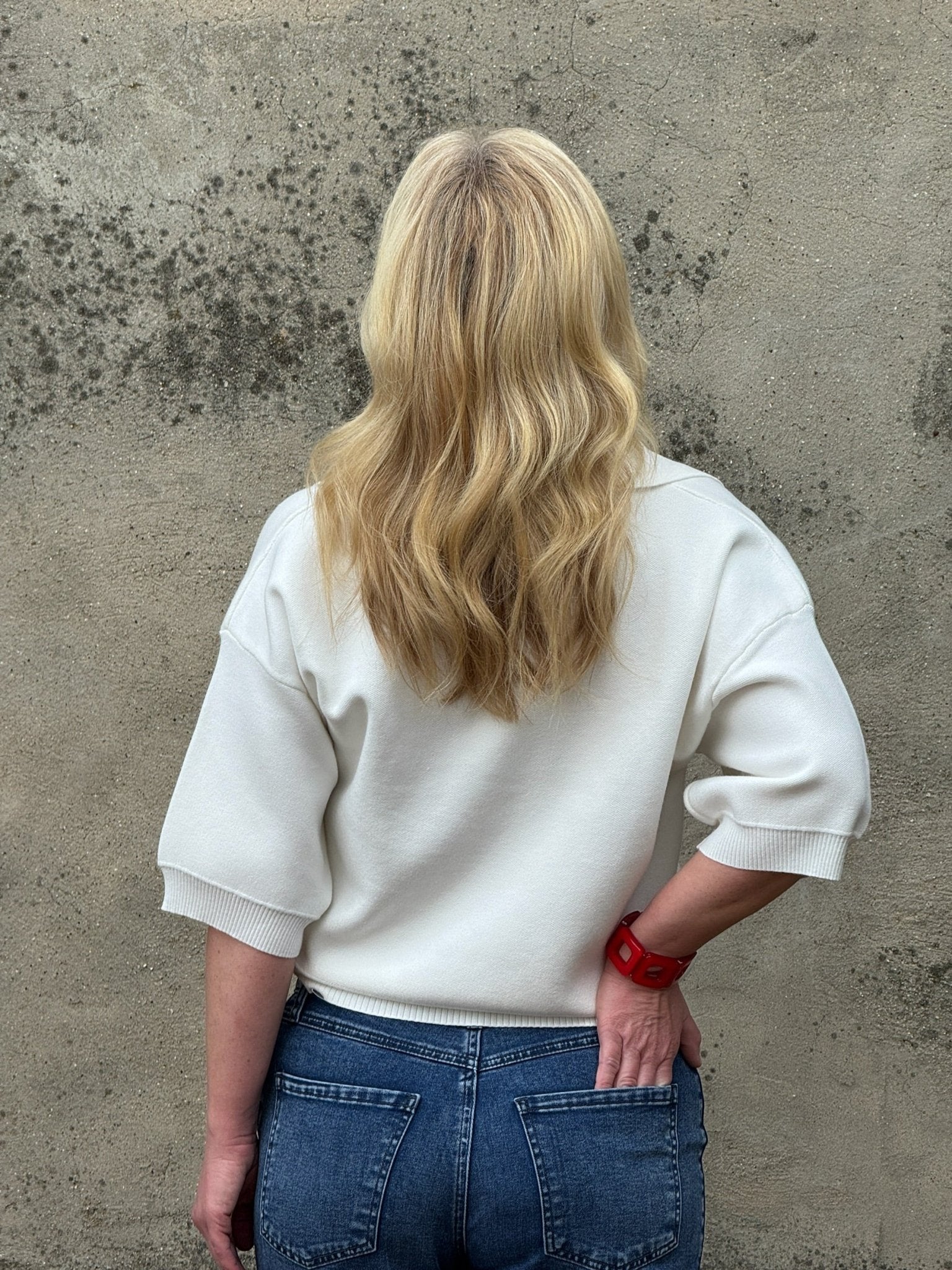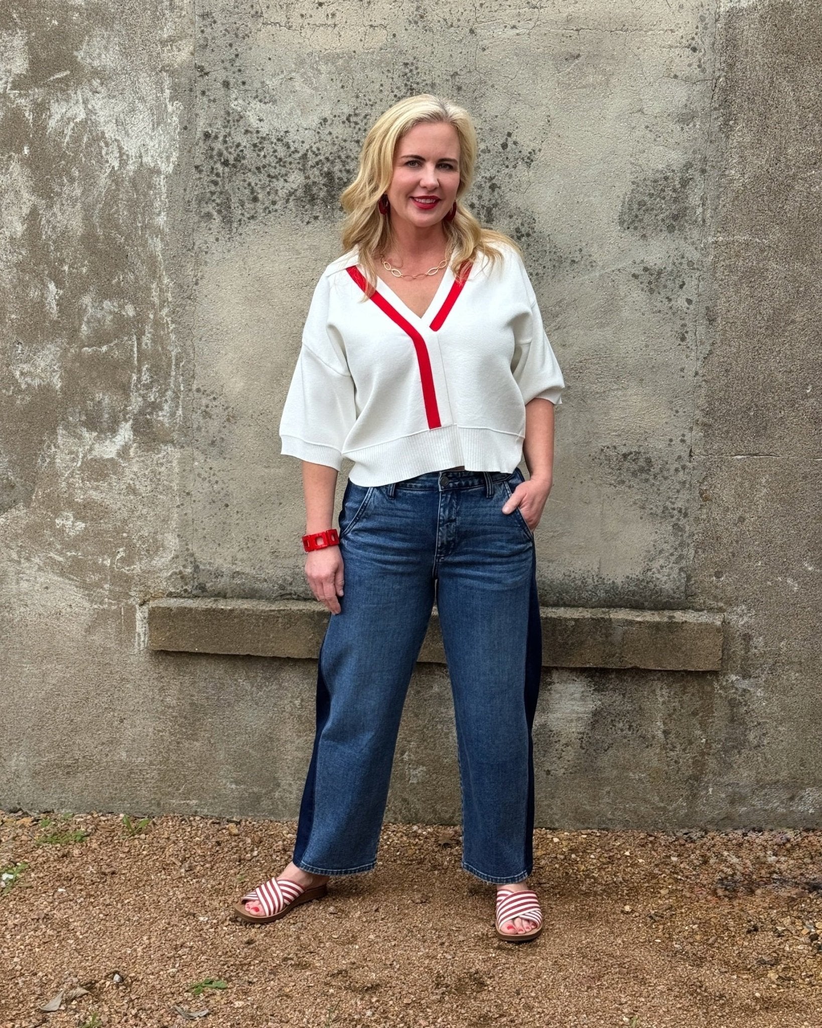 V Neck Collared Sweater with Front Stripe