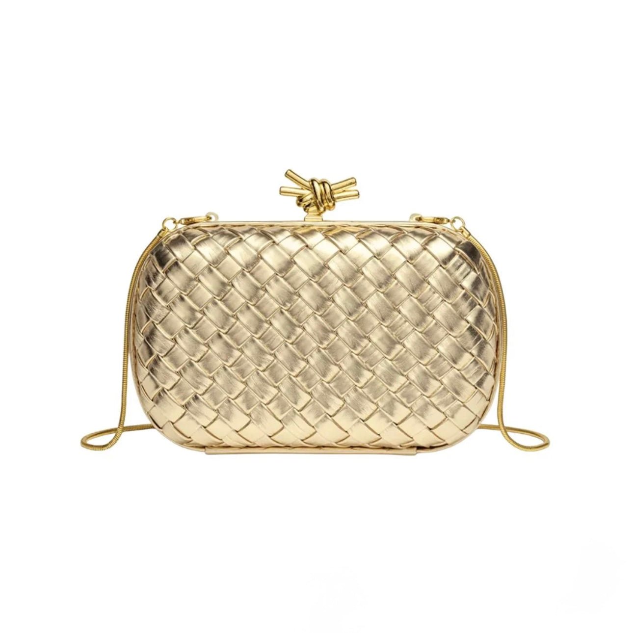 Make a dazzling statement at your next special event with our exquisite Bonsoir woven knot clutch bag. Its sophisticated design is perfect for elevating any evening ensemble, from formal gowns to chic cocktail dresses, adding an instant touch of glamour to your look. This stunning clutch features a unique and secure knot-detail clasp, adding a touch of designer-inspired charm and ensuring your essentials are kept safe.
