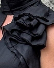•  The unique, cascading ruffle detail gracefully adorns one side of the body.