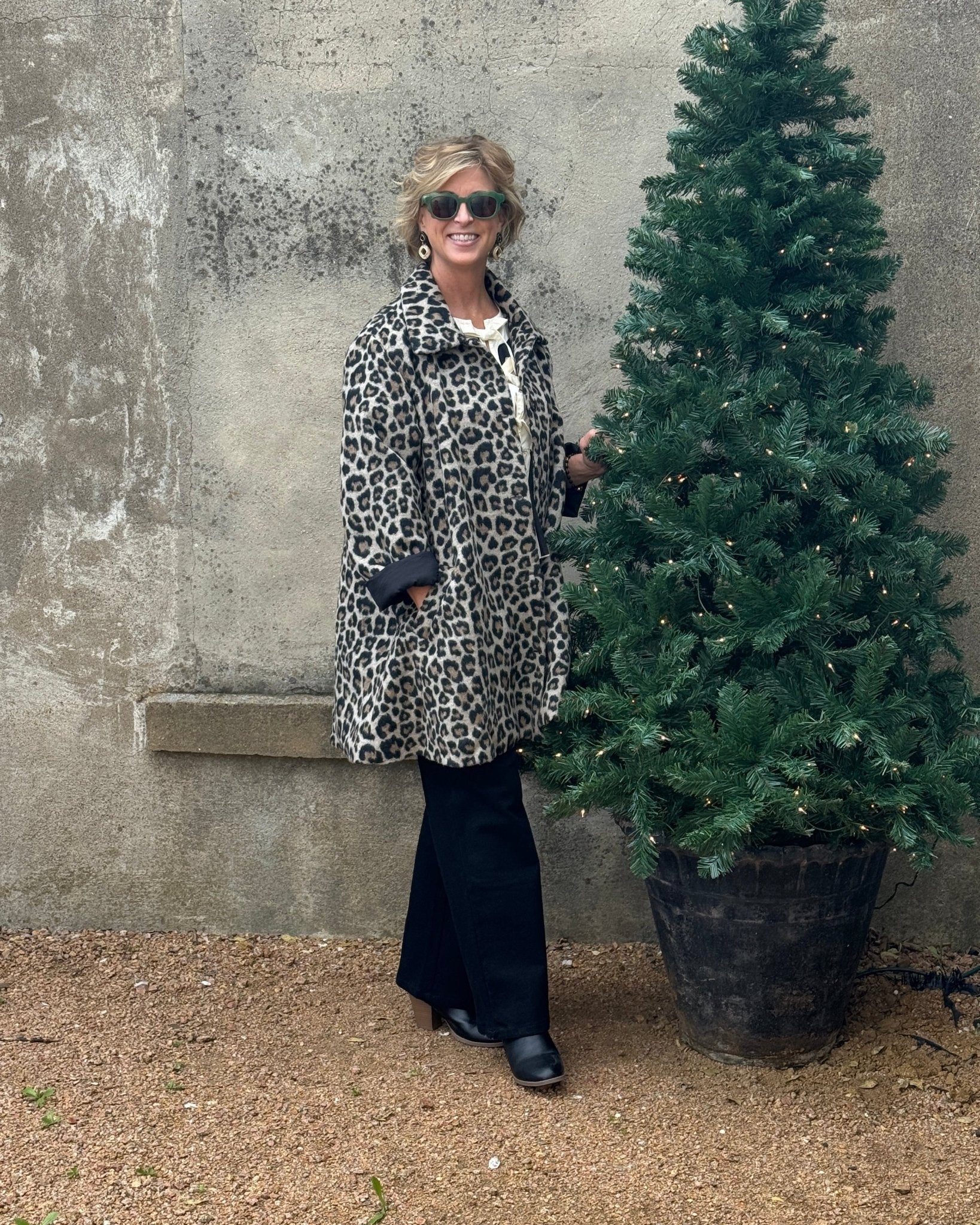 Crafted for comfort and style, this coat boasts a relaxed fit that allows for easy layering over your favorite sweaters or blouses. The attention to detail, from the classic collar to the smooth finish, ensures a premium feel and lasting appeal. Whether you're heading to a business meeting, a casual brunch, or a glamorous evening event, this leopard print coat effortlessly elevates your ensemble. Pair it with black trousers for a polished look, or dress it down with denim for a chic weekend vibe.