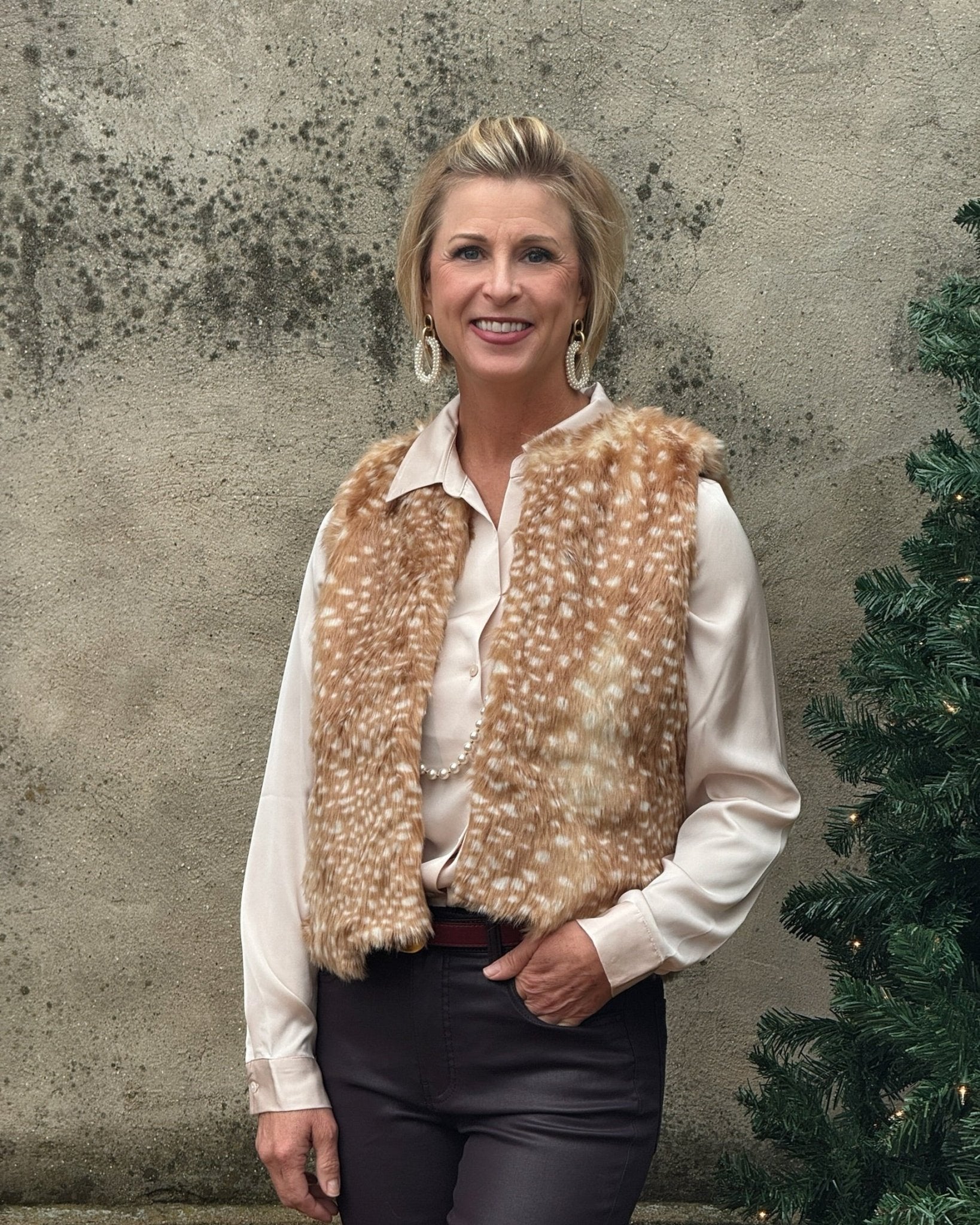 Faux Fur Fawn Print Vest – Annie Jack TX