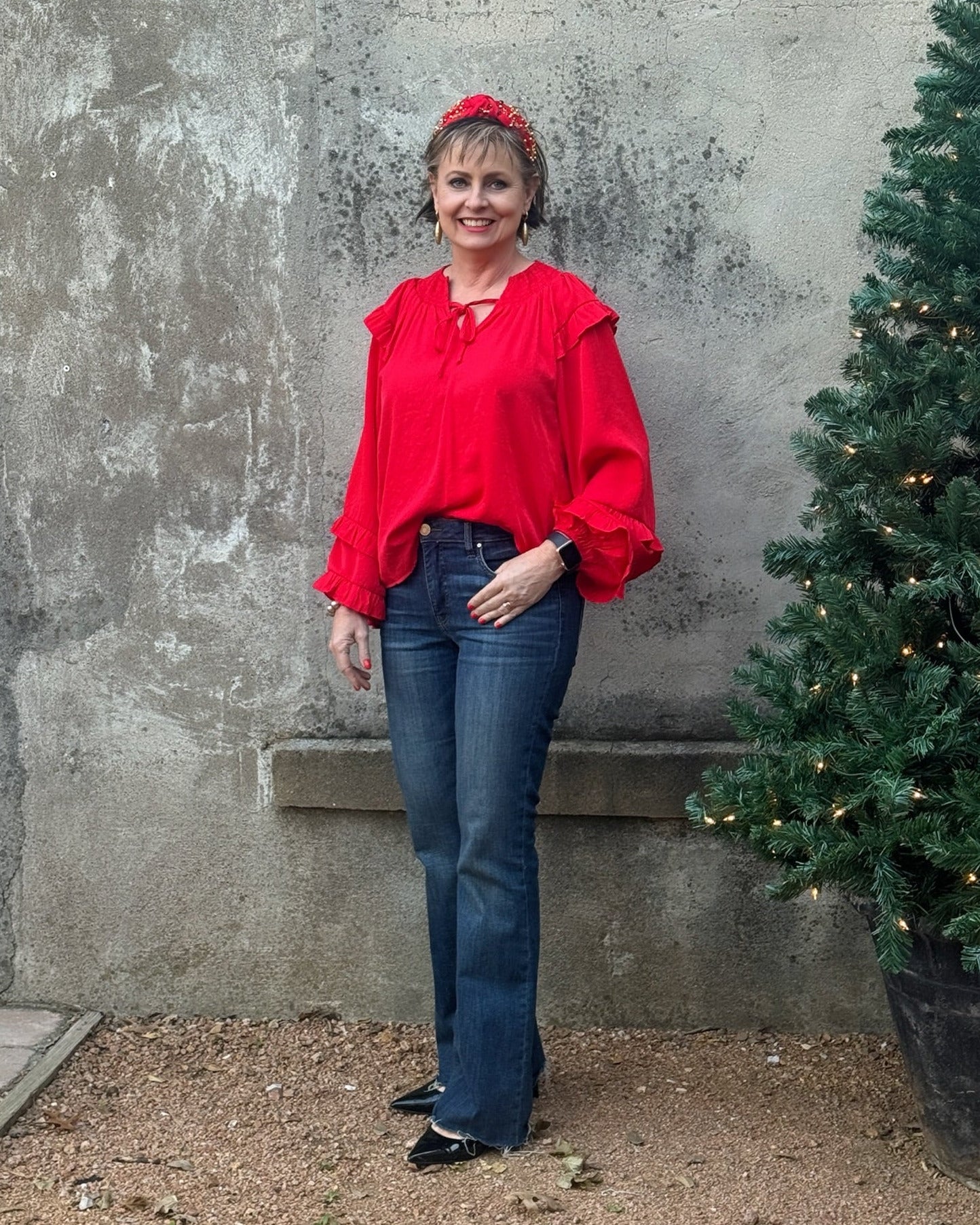 Elevate your wardrobe with our stunning red ruffle blouse. Its rich, striking red hue exudes confidence and charm, making it an essential addition for any season. Whether you're heading to a festive gathering, a casual brunch, or an important meeting, this versatile top effortlessly transitions with your day, ensuring you always look polished and chic.