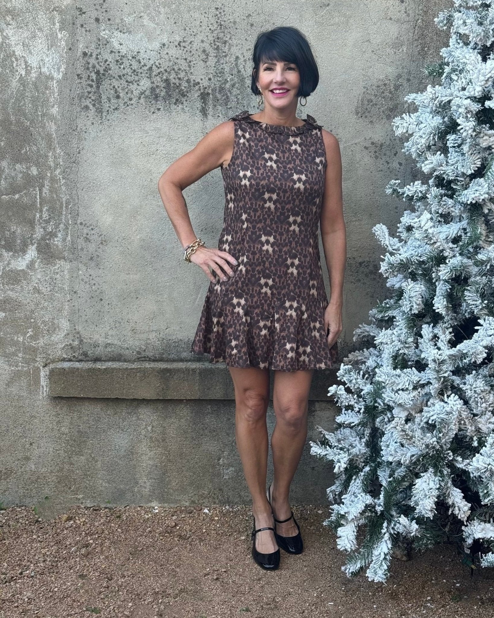 Make a statement in this leopard print cocktail dress. The soft, flat ruffle collar adds a playful touch while the mini length keeps things modern and fun. Perfect for nights out, parties, and holiday events.
