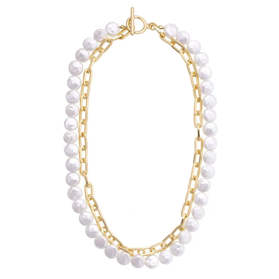 Coco Layered Pearl Linked Necklace in Shiny Gold
