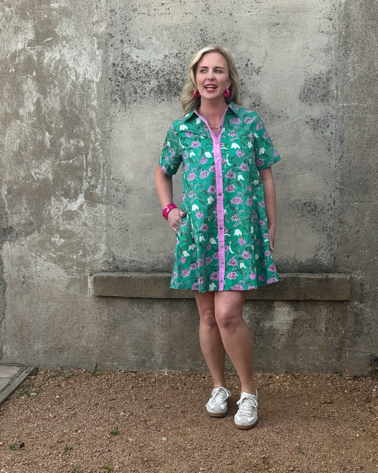 Meadow Bloom Floral Button-Down Shift Dress