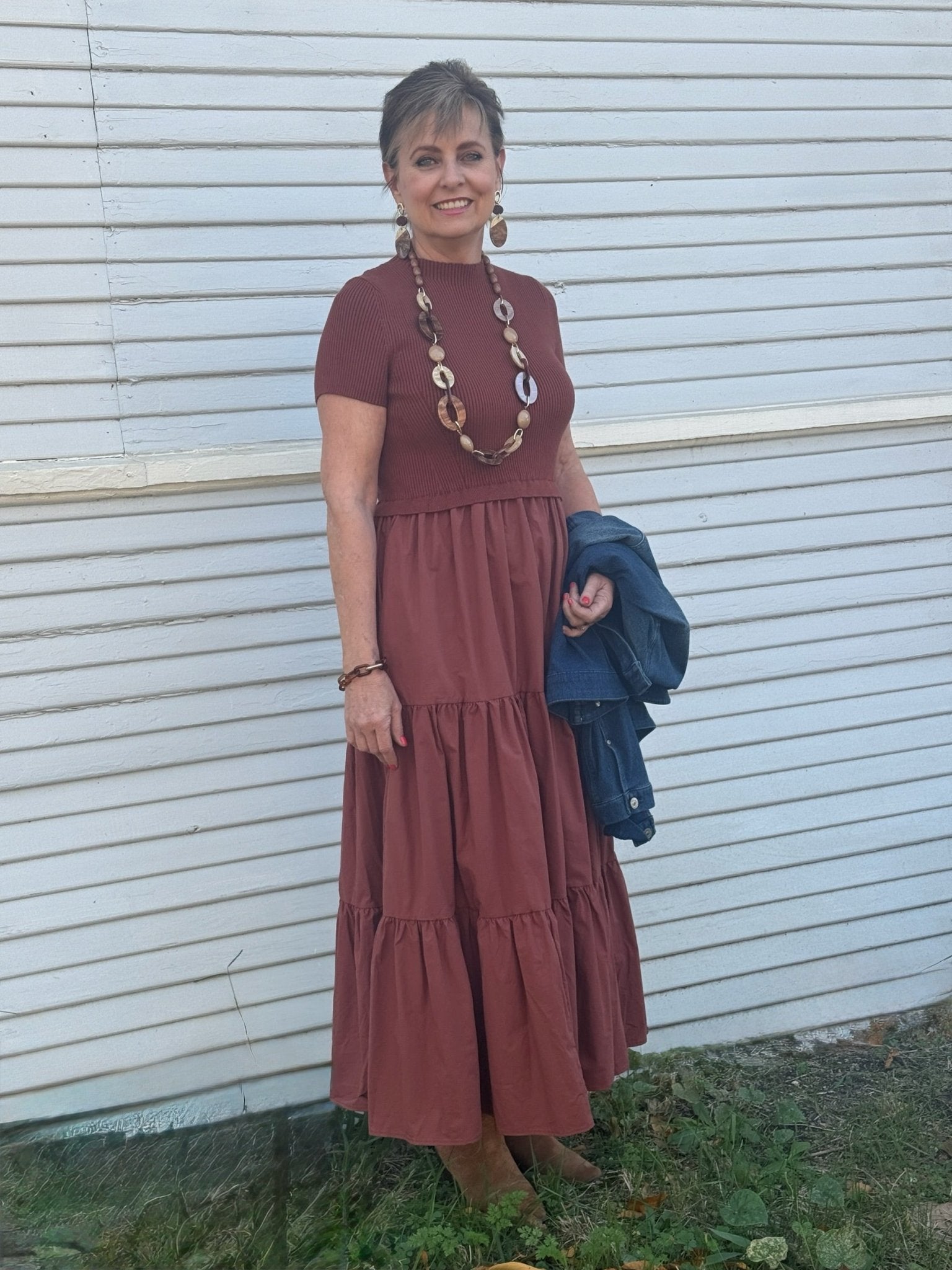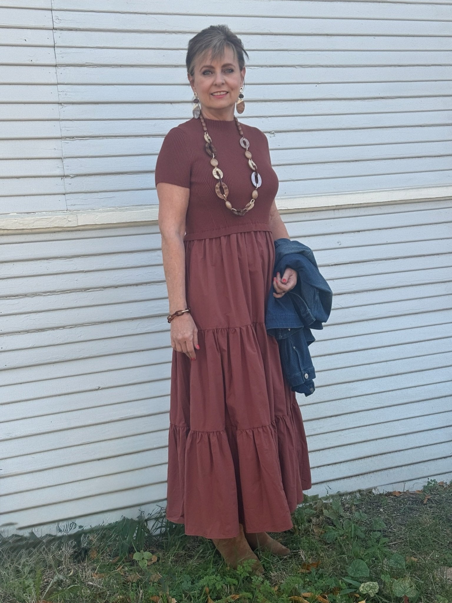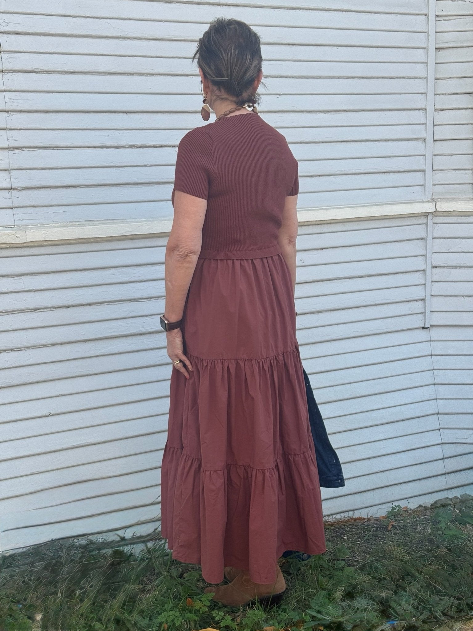 Embrace the effortless elegance of autumn with our stunning Rust Ribbed Mock Neck Tiered Maxi Dress. This captivating dress combines contemporary style with bohemian charm, featuring a rich, earthy rust hue that perfectly complements the fall palette. Its unique design offers a sophisticated yet comfortable silhouette, making it an essential addition to your seasonal wardrobe. From crisp morning walks to cozy evening gatherings, this dress promises to keep you stylish.